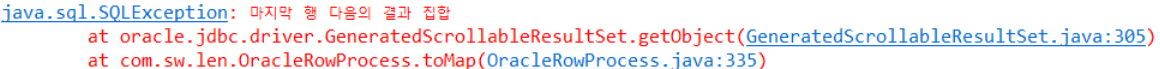 resultSet에 더 이상 데이터가 존재하지 않는데 resultSet에서 데이터를 가져오려고 할 때 발생하는 에러메시지